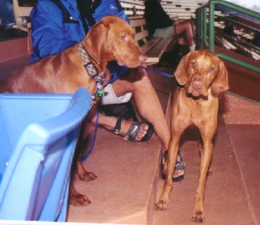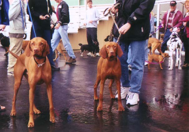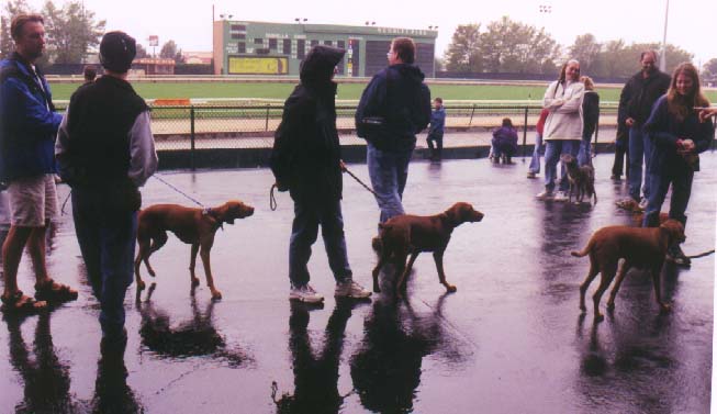 Pictures were taken at the HoundDawg Derby, an event to benefit the Recycled Racers program (retired greyhound adoption) The other Vizslas in the pix are Skylar and Mayzie.